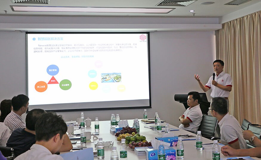 针对当前全国各地大力推进智慧城市建设这一浪潮,朱勇杰还向各位领导介绍了金沙3354cc智能研发的智慧建设解决方案,着重阐述了其中的智慧城市解决方案,指出该方案以“互联网+”促进电子政务全面转型,利用创新2.0驱动智慧城市转型升级,发展以“互联网+”为核心要素的智慧产业,打造智慧高效的网络安全保障体系,建设统一的智慧城市信息资源体系。